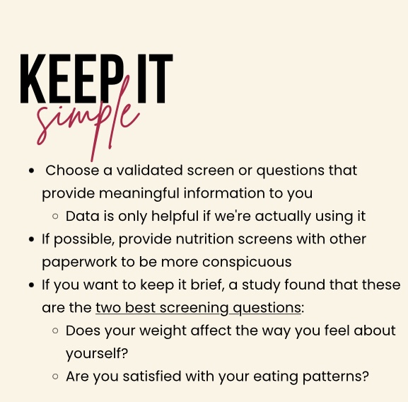 - Screening tools for disordered eating